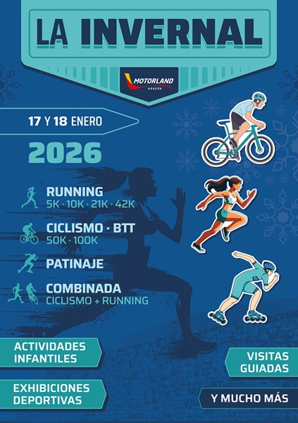 Los días 17 y 18 de enero, en Alcañiz, en Motorland Aragón, sobre el trazado del circuito de velocidad se celebra “La Invernal”, una competición deportiva en las modalidades de Running, Ciclismo-BTT, Patinaje y Combinada, que ya es conocida por ser la primera del calendario deportivo de la comunidad.