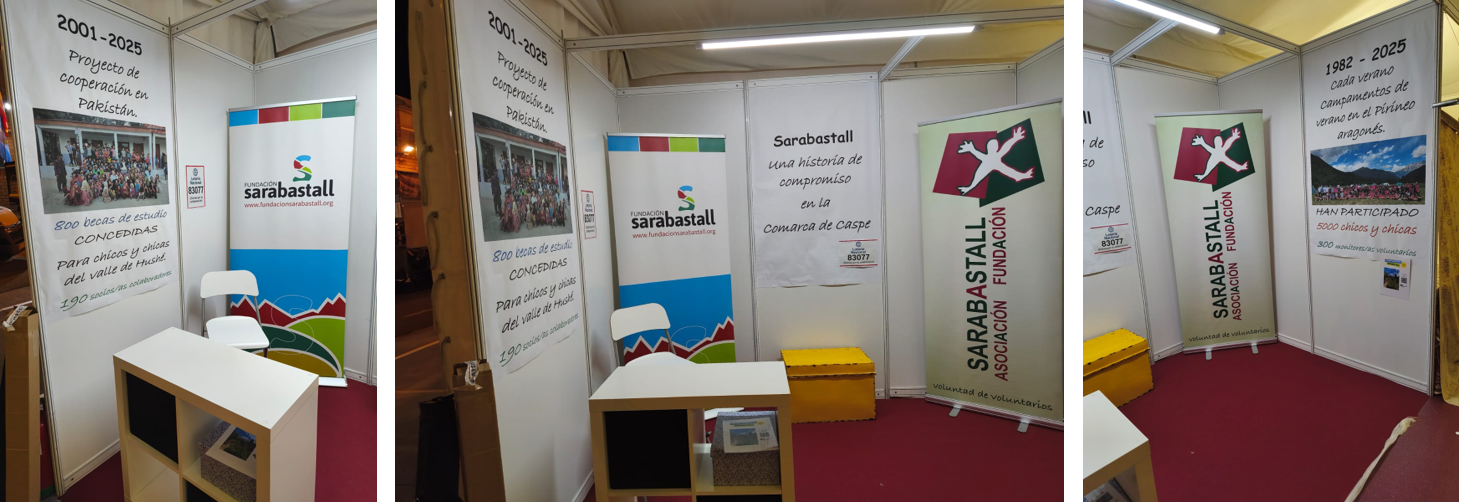 Desde el Pabellón de la Solidaridad la Asociación y la Fundación Sarabastall recordaron su larga trayectoria y la importancia del trabajo desarrollado tanto en la Comarca de Caspe como en el Valle de Hushé en Pakistán.